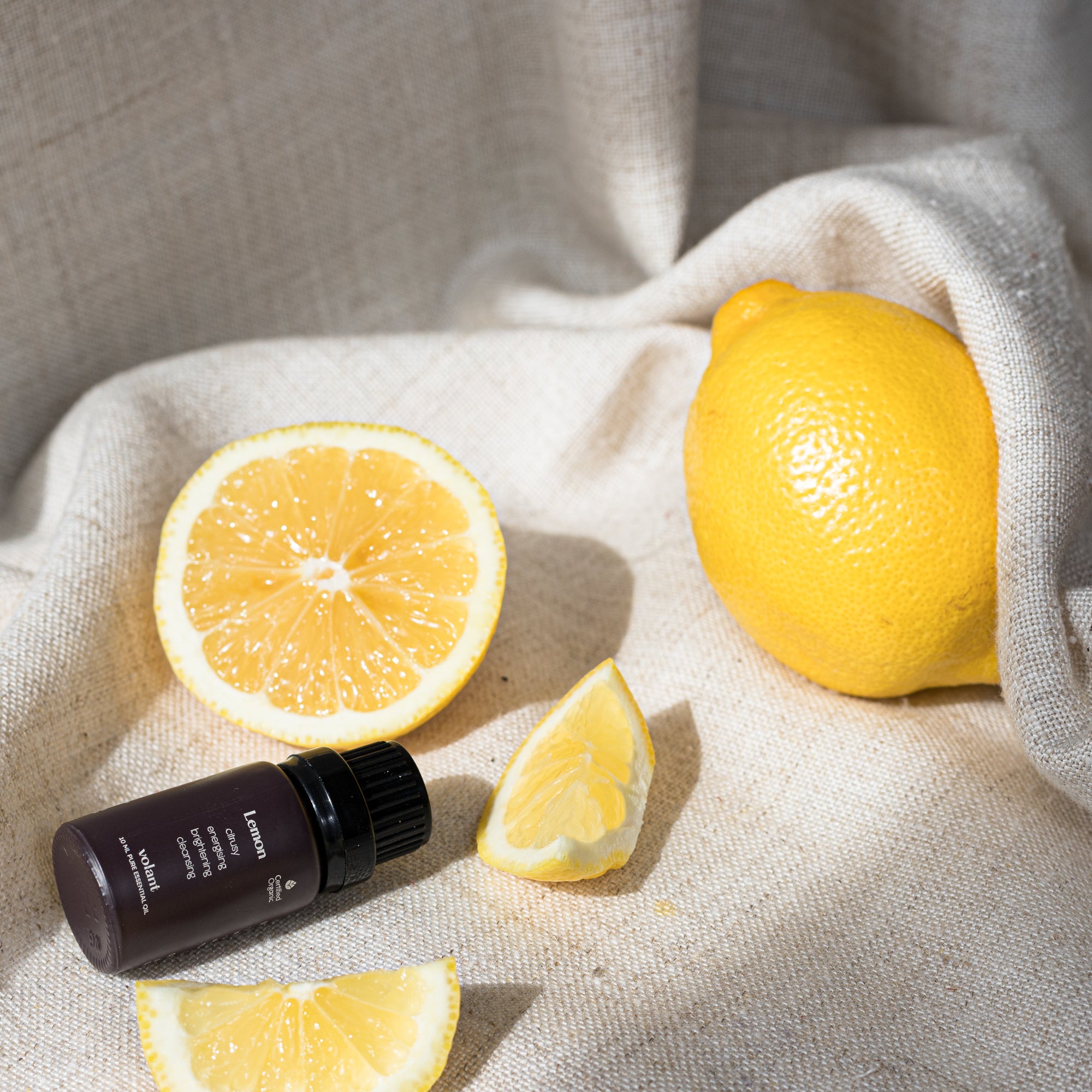Ekologisk citron är ljus, saftig och fräsch. Citron är kraftfull vid rengöring av hemmet och renar luft och ytor. Den distinkta och starka doften är stämningshöjande och för tankarna till varma sommarnätter.